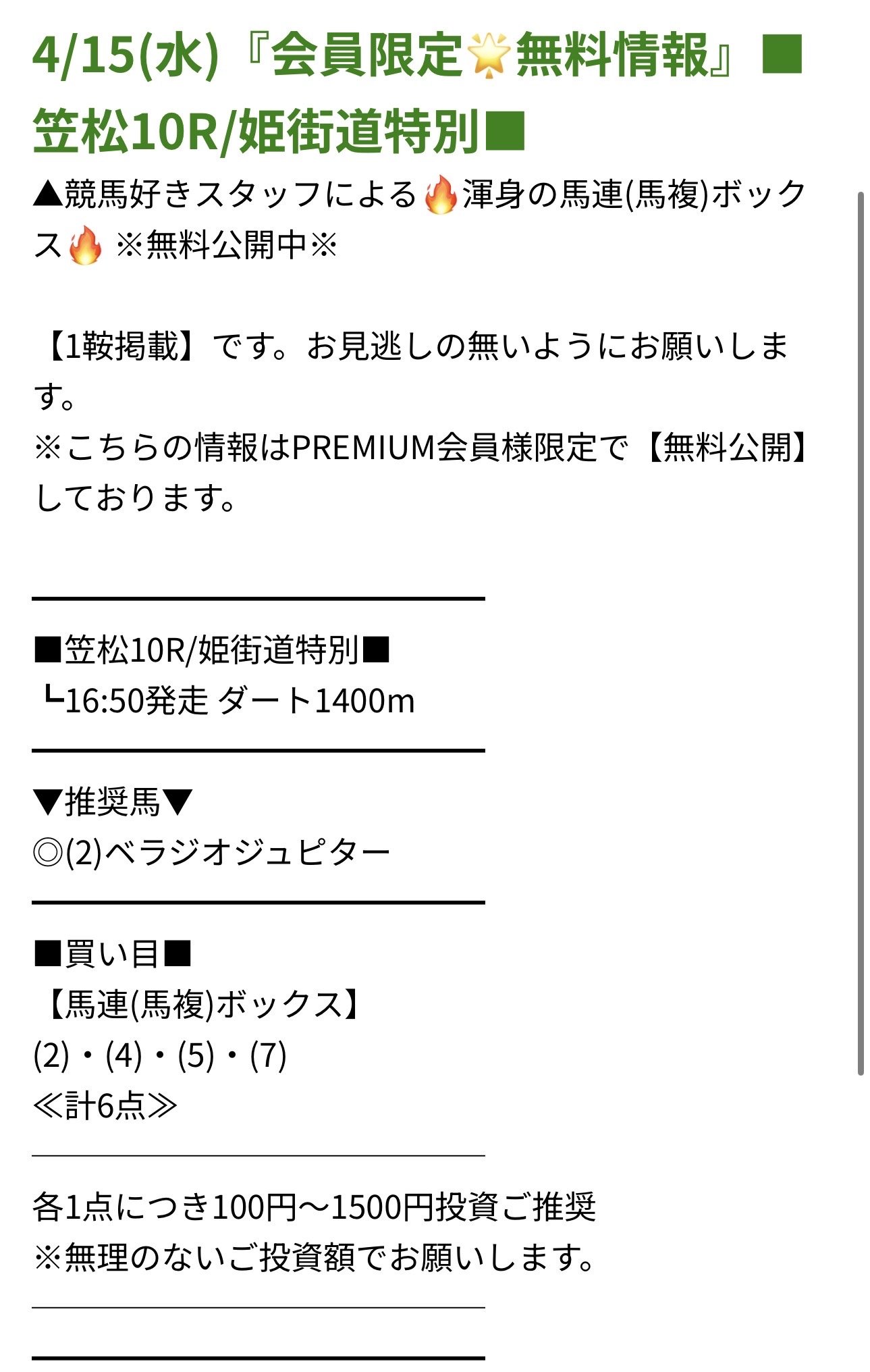 約3か月分の小遣いをたった1レースの無料予想で獲得!