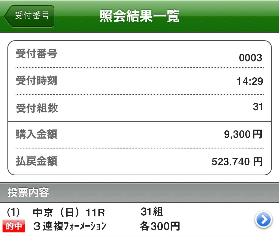 荒れ模様のレースを三連複でうまく拾って258,720円を獲得!