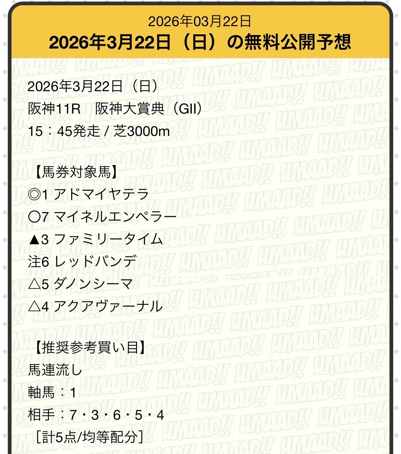 2026/03/22(sun)G2阪神大賞典