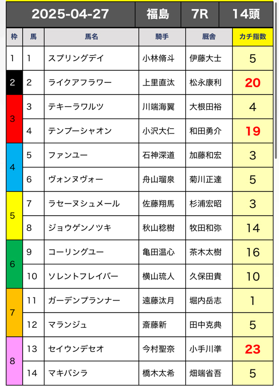4月27日(日)の福島7RのAI無料予想