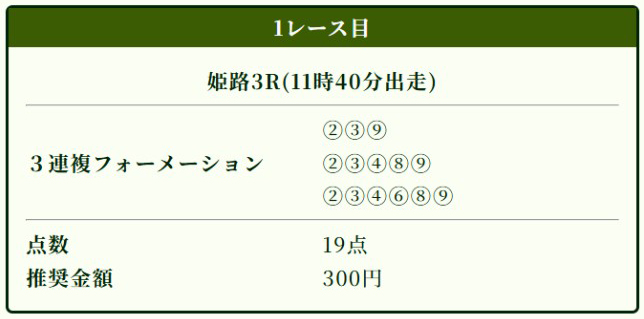 私はサイトの買い目指示通り1点300円で勝負しましたが