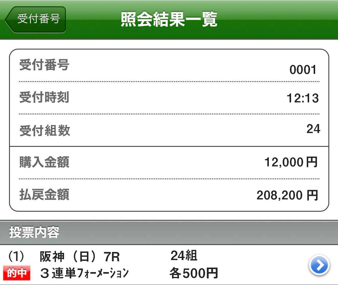 馬券代1点1000円で2万3200円の配当獲得!