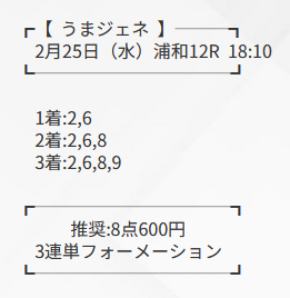 自分で買う時って、どうしても不安で点数を増やしてしまうんですけど、うまジェネの無料予想は逆でしたね。必要なところだけ絞ってる。