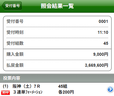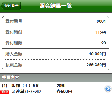 26万9350円を獲得!的中馬券画像貼っておきます!